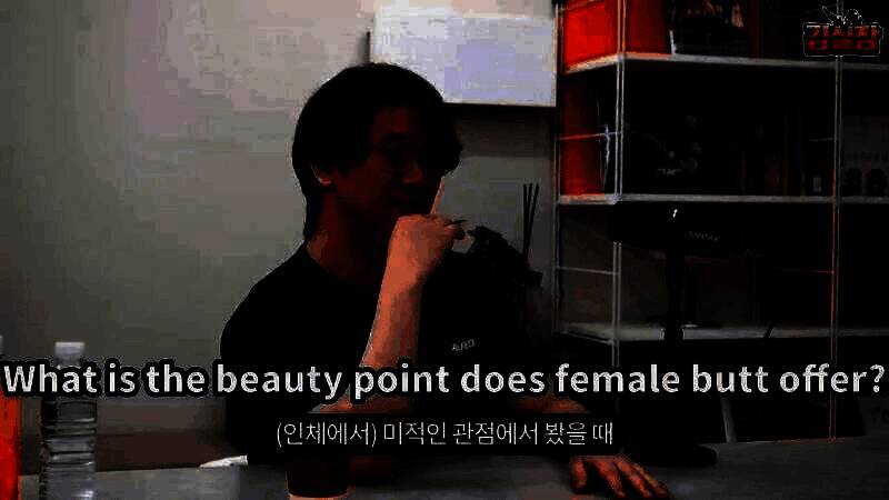 在视频中,主持人提到臀部是身体非常性感的一部分,对于这个问题从艺术的角度又有怎样的看法。这个时候金亨泰立马化身金博士,他一本正经地向主持人科普。