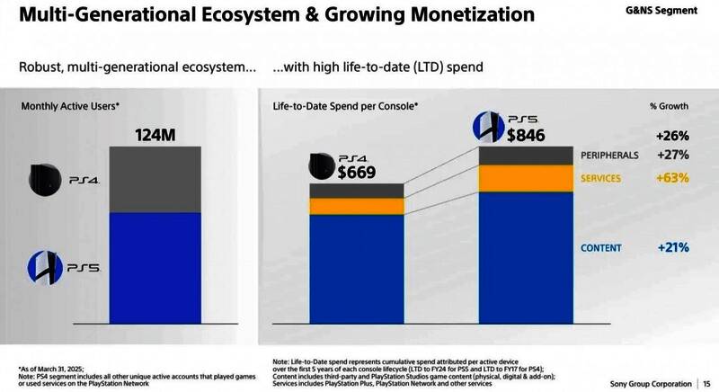 关于PlayStation Plus服务,分析师透露38%的订阅用户选择Extra或Premium高级会员(两年前该比例为30%),这使得PS5生命周期前五年的订阅服务支出较PS4同期增长63%。