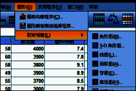 然后我们点击“图形”,选择“旧对话框(L)”,点击“饼图”(如图所示)。