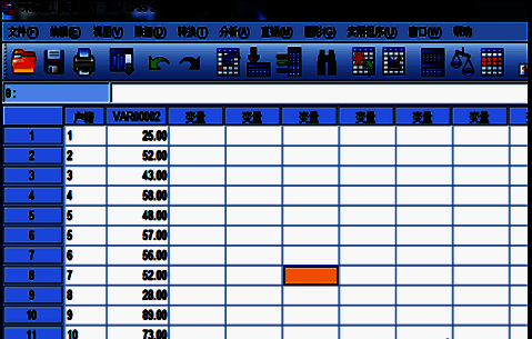 首先,打开spss软件,并且输入用于分析的2组变量的数据(如图所示)。