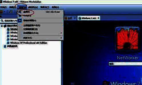 选择"全屏"项,用于全屏显示运行的虚拟机。