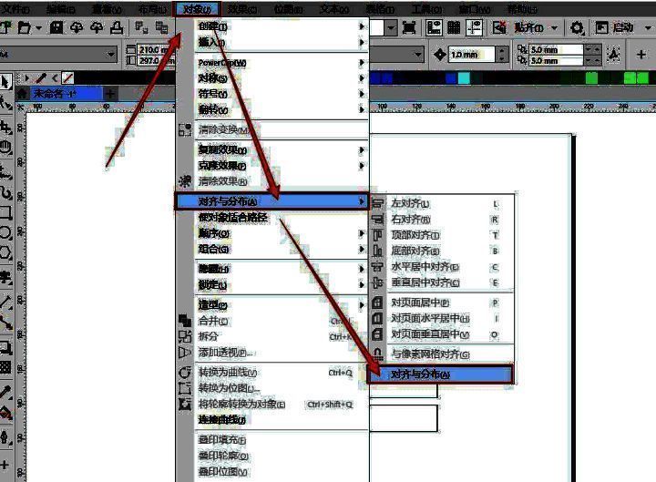 2.随后,选中所有图形,点击对象菜单中的对齐与分布按钮