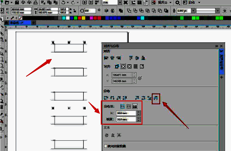 4.最后,如下图所示输入参数值,点击垂直分散排列按钮即可