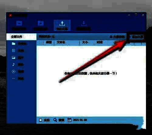 4.进入“我的共享”页面后,点击右上角的“添加共享”。