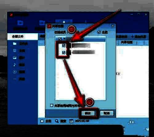 6.最后,在“共享范围”窗口中,选择可以访问此共享文件的用户(勾选相应的权限),点击“确定”。这样,文件就会在局域网中被共享。