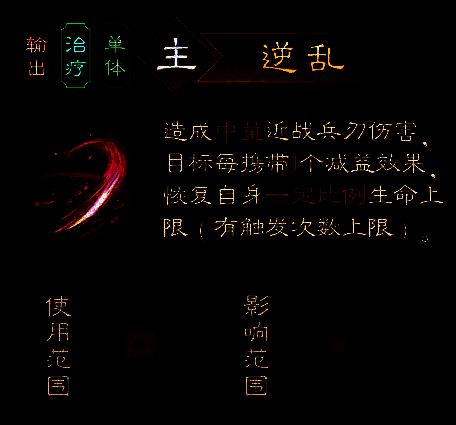 造成中量近战兵刃伤害目标每携带1个减益效果恢复自身一定比例生命上限(有触发次数上限)