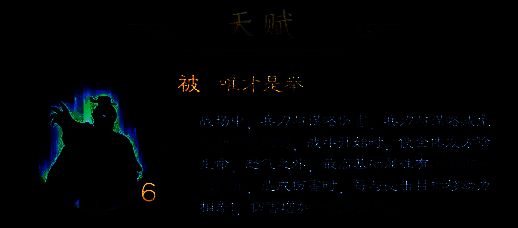 战场中,兵刃与谋略伤害、兵刃与谋略减免提升一定比例,战斗开始时,使全体友方除生命、怒气之外,最高基础属性有少量百分比提升,造成伤害时每与受击目标移动力相差1.伤害增加一定百分比。