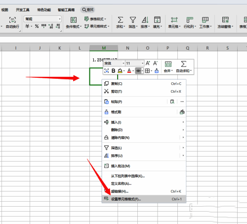 3、选中需要输入的单元格,单击右键,点击【设置单元格格式】;
