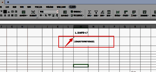 2、打开文档,单元格中输入的数字显示为【E+形式】;