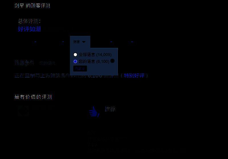 《剑星》PC Steam版评论,简中评论6100条,总评论14009,简中占比43.5%: