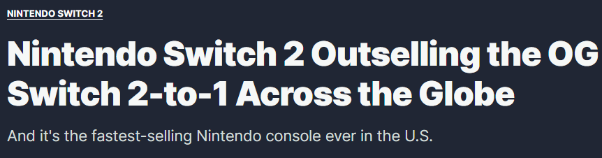 尽管发售前也有不少不利的声音,但玩家的身体是诚实的,根据IGN的最新报道,Switch 2已经成为美国发售4天最畅销游戏机,具体数额官方并未公布,但推测或已超100万。
