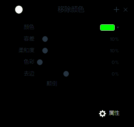 3.添加移除颜色效果后,可能还会存在背景颜色没有去除完全的情况。此时你可以在右侧的属性设置中进行修改,例如适当调大容差。此外,在该菜单中还可以修改柔和度、色彩等其他参数。