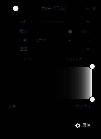 4、在进行滤镜范围调整时,通过拖动方框以调整阴影和突出显示的比例,可以选择黑白滤镜在图片上的应用范围。如下图所示,你可以在视频监视器中实时查看到滤镜的变化效果。根据自己的需求,对滤镜的效果进行个性化调整。