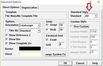 Design->Option-> Standard Style选择A4纸。