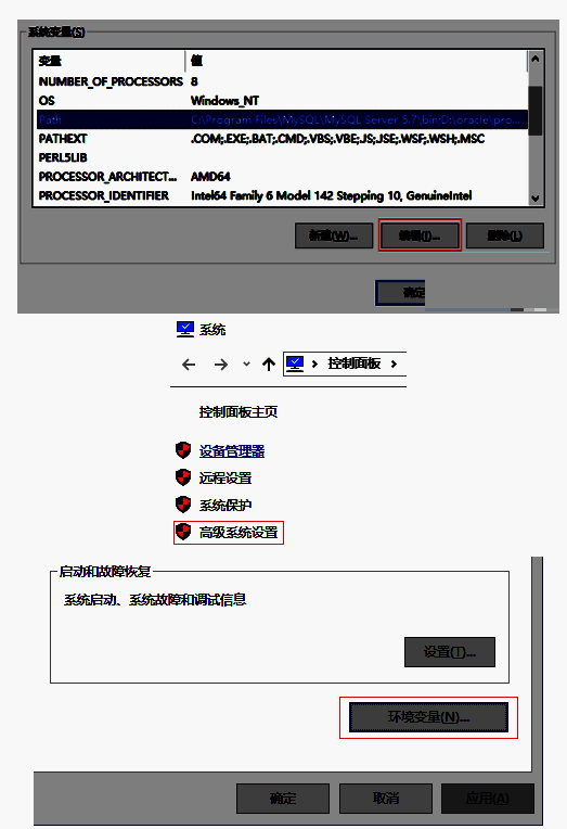 我的电脑 – 右键 – 属性 – 高级系统设置 – 系统变量