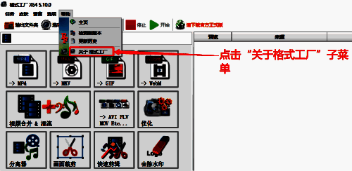 2.随后,在子菜单中打开关于格式工厂选项