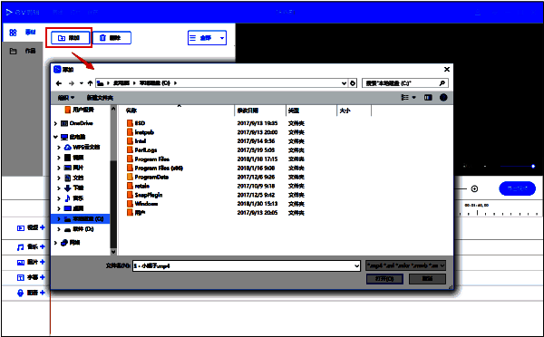 2、登录ev剪辑软件之后,点击页面左上角的“添加”选择需要进行剪辑的素材即可(包括音乐、图片、视频等)。可以看到所有添加的素材都会出现在素材区。