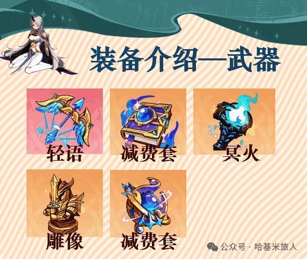减费套:和副武器成套,适合奥义为高费用的角色,如灯神(6费)和奥法领主(5费)。