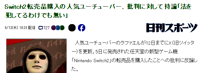 前几天,一位170万粉丝的日本网红主播公然坦白是花了高价购买黄牛制作NS2评测,引发炎上争议,12日今天,面对大批网络非议批评声音,网红回应表示“没犯法毫不在意”“”炒作的样本示例”。