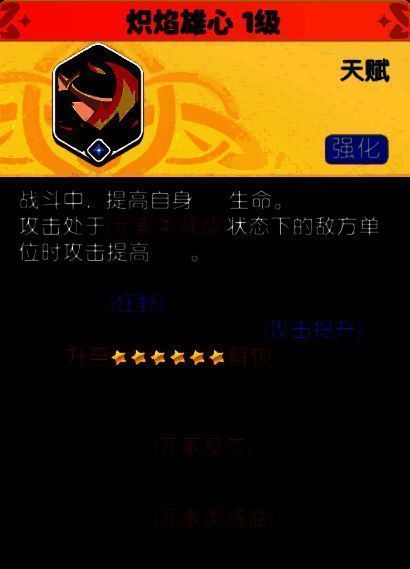 核心天赋:炽焰雄心对处于【灼烧】【感电】【寒冷】等元素减益状态的敌人造成伤害时,伤害大幅提升。