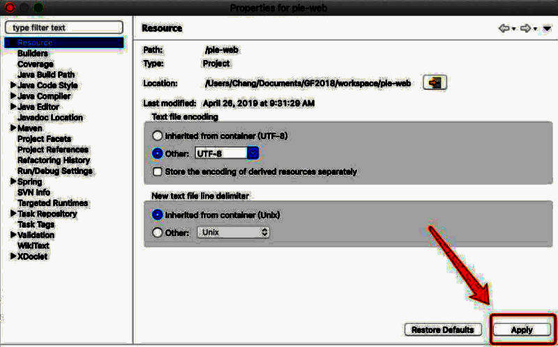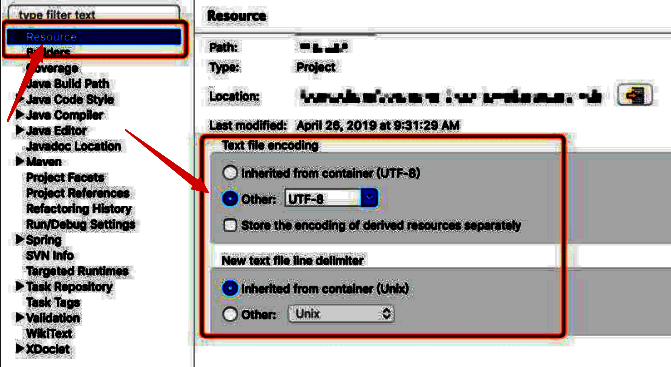 2.然后,在Resource栏目中找到Text file encoding板块,将代码编码设置为UTF-8