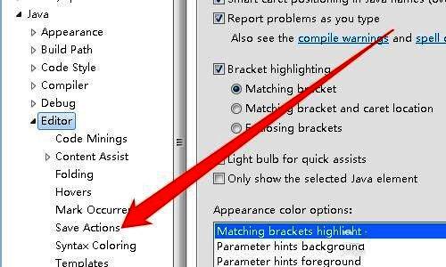 3.接着,在打开的新窗口中找到Java板块下的Editor选项,点击Save Actions按钮