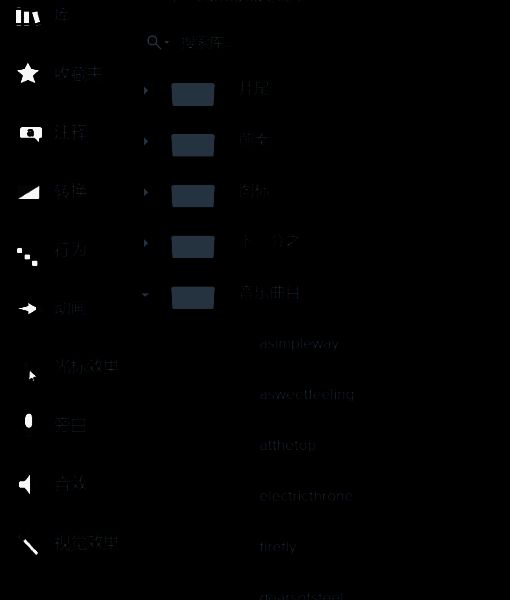 4.除了使用自己准备的音频素材外,camtasia的库中也提供了丰富的音乐素材。打开左侧的库,在其中的“音乐曲目”文件夹中可以找到这些素材并使用。