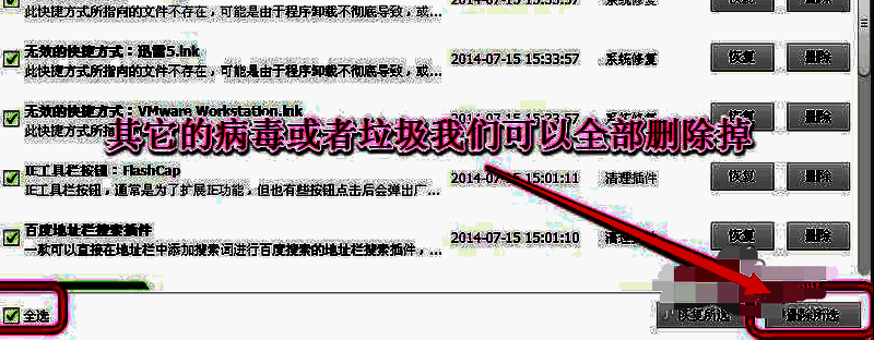 我们也可以将隔离文件中不需要或者是却是有问题的文件给彻底删除掉。