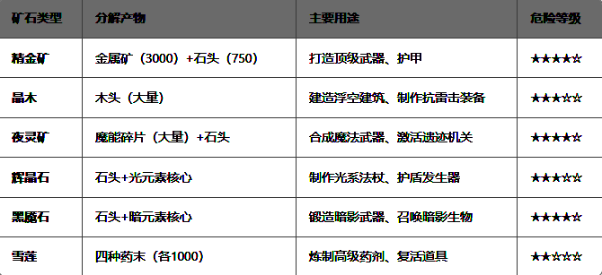 高危矿石采集点设置「临时营地」,存放补给与复活道具。