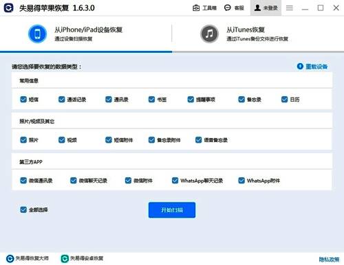 1.首先用户们需要打开下载好的失易得苹果恢复应用程序(这里以失易得苹果恢复1.6.3.0版本为例,用户们可以前往官网免费下载此程序)。