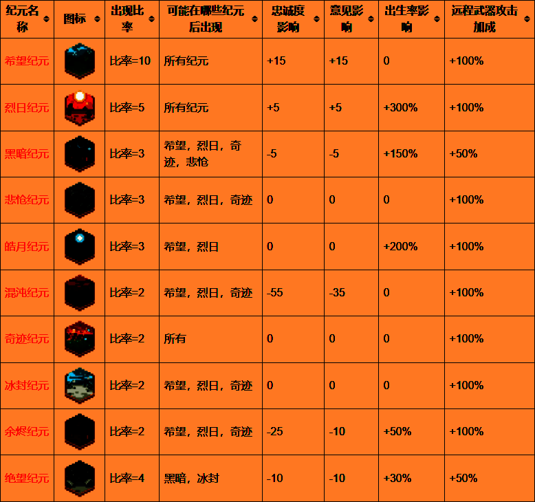 世界盒子中有10个纪元。每个纪元都会对世界的各个方面产生独特的影响。