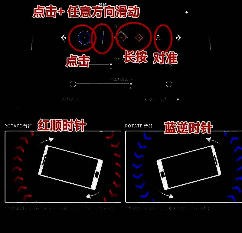 4️⃣红色音符,无需点按,需要旋转手机与判定区域对齐通过即判定成功
