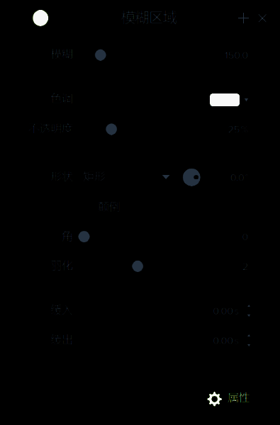 2.添加完效果后,可以在右侧的属性中对该效果进行更改。通过提高模糊度使得水印去除的更加彻底。如果水印的形状不是矩形,你还可以修改模糊区域的形状,并修改角、羽化效果等参数。你还可以为该效果添加动态的缓入、缓出效果等。