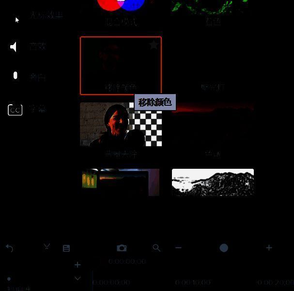 2.将素材拖动到下方的时间轴中摆好位置后,找到左侧的视觉效果,选择其中的移除颜色选项,并将该效果直接拖动到时间轴的素材中。