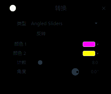 4、添加效果完成后,可以在右侧的菜单中对该效果的相关参数进行更改。以下图所示的转场为例,可以调整颜色、转换的角度等。点击展开类型菜单,可以直接更换为不同类型的转场。