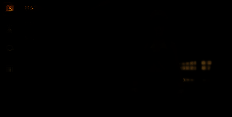 右上角第四个选项能帮助开启一个九宫格辅助线,有了辅助线能让我们更好地构图,右上角的第一个点击的,会让拍照下来照片的减少自带的黑色阴影,四个选项的左侧第一个选项是“景深”。