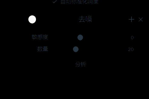 4.在右侧的属性中,可以对降噪量相关参数进行调整。如果整段音频中噪声声音较大且较多,可以适当调高数量,降低敏感度;反之,如果音频中噪声声音较小但较少,可以适当提高敏感度,减少数量。总之,需要通过不断调整参数、试听,来获得最佳的去噪效果。