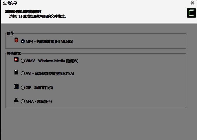 使用Camtasia完成视频的剪辑后,可以将其导出为常用的视频格式,其中就包括mp4格式。
