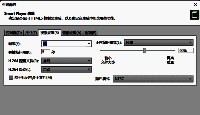 5.在后续的生成向导中,还可以对视频的其他相关细节进行设置。如下图所示,以视频设置为例,在该菜单中,可以调整视频的帧率、编码模式、关键帧间隔等。