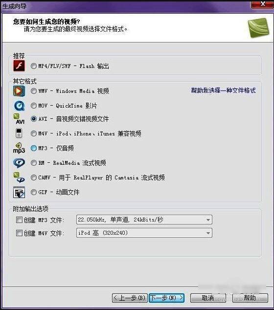 3.在格式选项中,选择“AVI-音视频交错视频文件”。