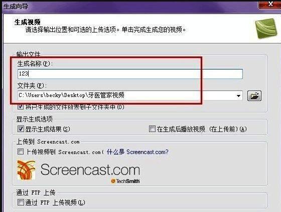 6.为生成的视频命名,根据录制内容和个人喜好来定义名称。同时,指定输出文件夹的名称。
