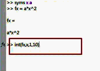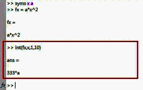 4、再输入int(fx,x,1,10)来求积分,如下图所示。