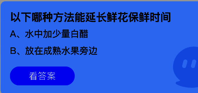 以下哪种方法能延长鲜花保鲜时间?这是支付宝蚂蚁庄园小鸡答题6月14日题目,支付宝小鸡答题是大家非常喜欢的活动,大家获取饲料就可以喂养小鸡领取更多的蛋去帮助更多的人了!今日正确答案是【水中加少量白醋】,白醋可以降低水的pH值,抑制细菌生长,从而延长鲜花保鲜时间。