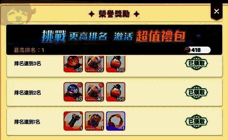 重头戏来了!PVP玩法中的竞技场有一次性冲榜奖励,登顶一次即可拿满钻石奖励,此外,根据最高排名还能解锁荣誉奖励,通常越后面的奖励性价比越高。因此,进度快一些的小伙伴们会较早解锁竞技场玩法,有机会在竞争力较小的情况下顺利登顶,如果游戏进程推进的比较慢,后续只能依靠和大佬py来登顶了。不过大家也不用太担心,一般来说走走后门都是能顺利登顶的。