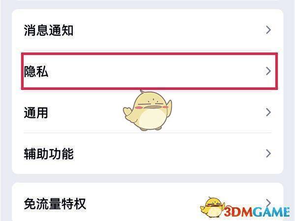 2、找到并且点击【隐私】选项。