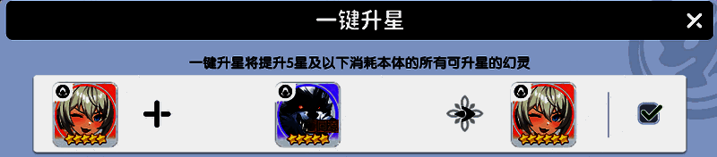 芬里尔升星芬里尔的升星非常方便,只需通过“同源幻灵”升星,不需要重复获得猫女本体,即可提升星级~