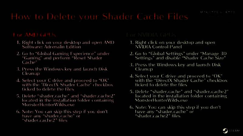 删除位于MonsterHunterWilds.exe文件夹中的“shader.cache”和“shader.cache2”文件。
