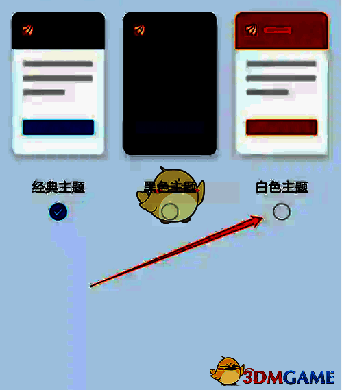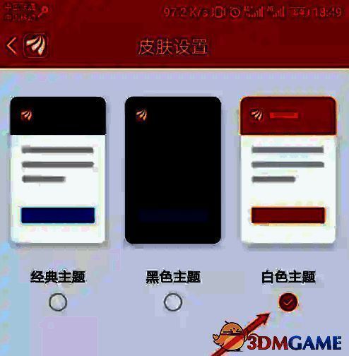 3、皮肤设置页面根据指引点击“白色主题”标识。