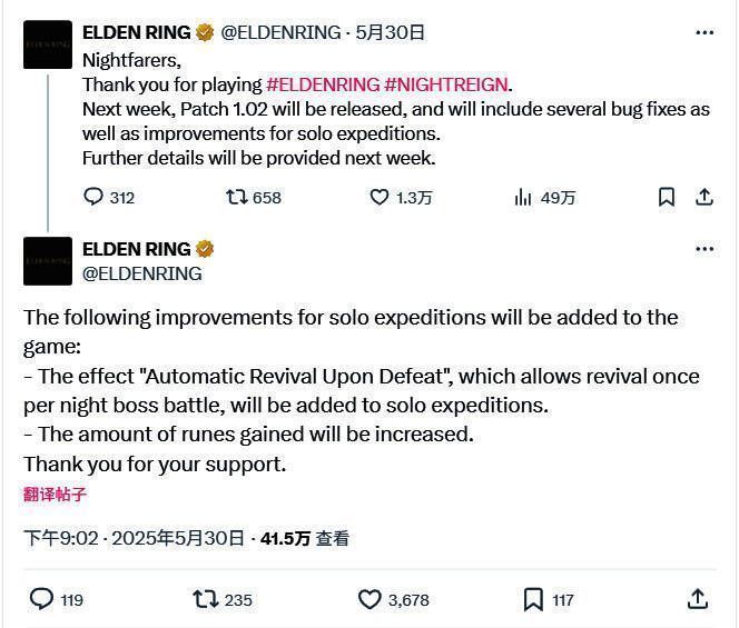 《艾尔登法环:黑夜君临》大获成功,首日销量超过200万套,Steam首日同时在线玩家超过30万。不过,这款游戏仍存在许多问题,其中最严重的莫过于单人游戏的不平衡。值得庆幸的是,开发团队已经意识到了这个问题,并确认将于下周发布补丁1.02。