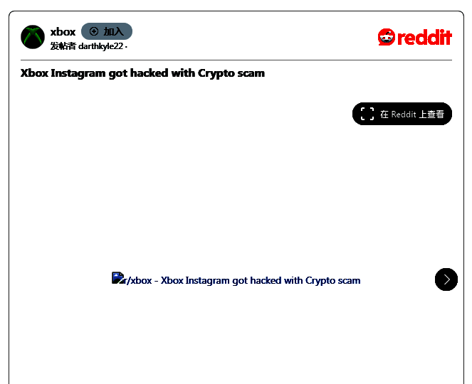 今天有媒体发现,Xbox官方Ins以及脸书账号忽然发布奇怪加密货币情报,但很快就被删除,推测官方账号疑似被黑。